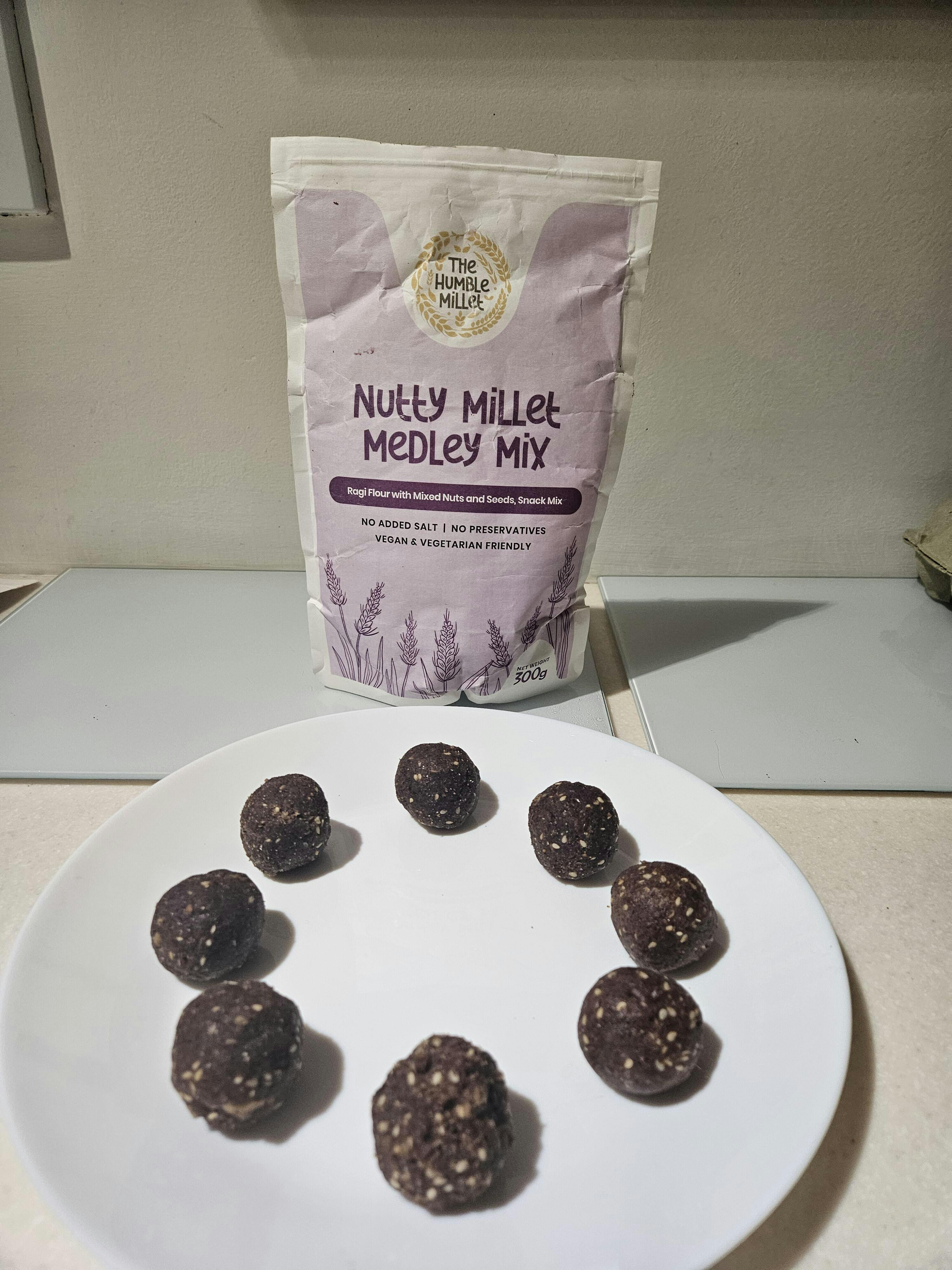 Indulge in our Nutty Millet Medley Mix, a delicious blend of Ragi (Finger Millet), mixed nuts, and seeds. Our healthy alternative will satisfy your cravings with its flavour and convenience. Simply roll into snack-sized balls and enjoy the benefits of this nutritious and flavourful mix.